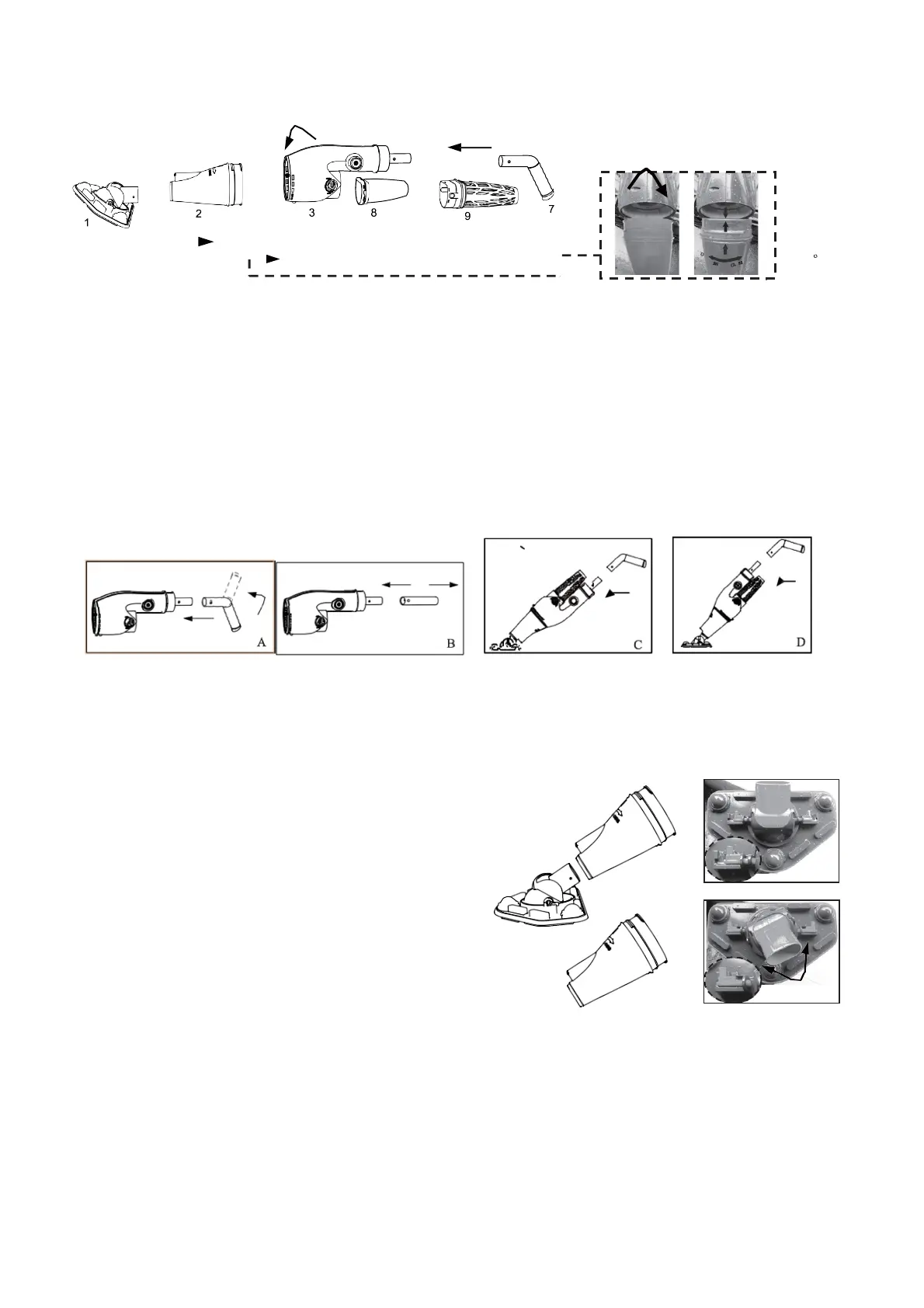 • Insira a cabeça pivotante para aspirar pedrinhas e