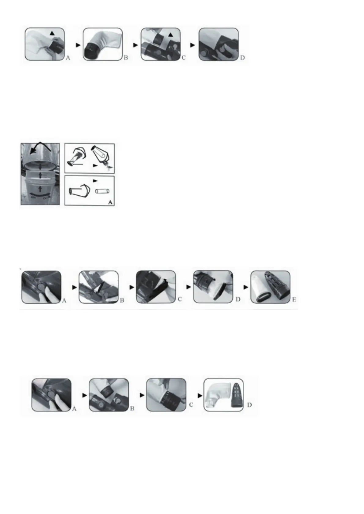 (1) Kroky čistenia štandardného filtračného vrecka (A-B-C-D-E):