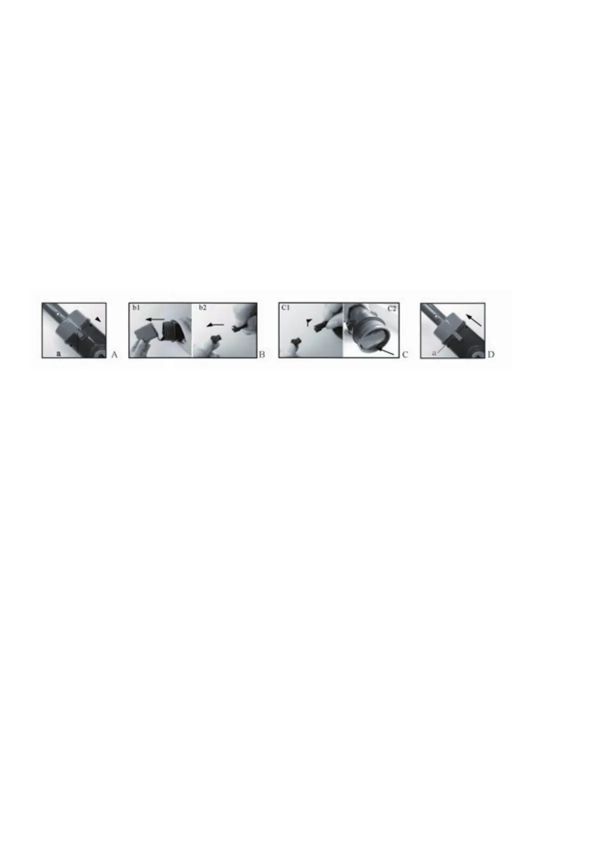 (4) Konektor zaskrutkujte do tela v smere hodinových ručičiek, kým sa tlačidlo „a“ nezachytí v