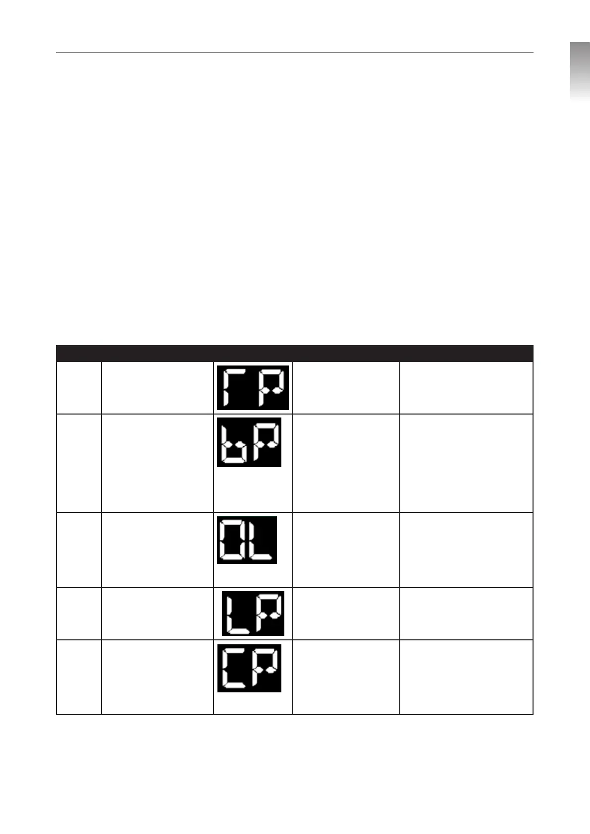 Når motortemperaturen er højere end 90 °C eller lavere end -5 °C, stopper pumpen, og fejlkoden TP vises.