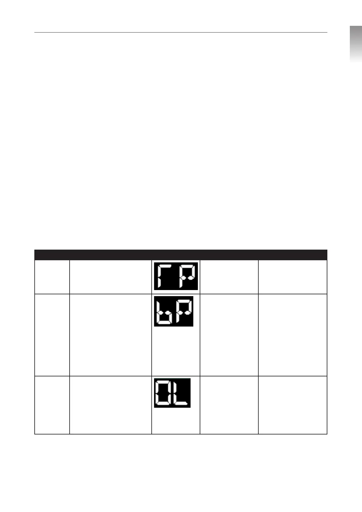 When the controller has a fault such as over load or over current, the error code OL is displayed. The pump tries