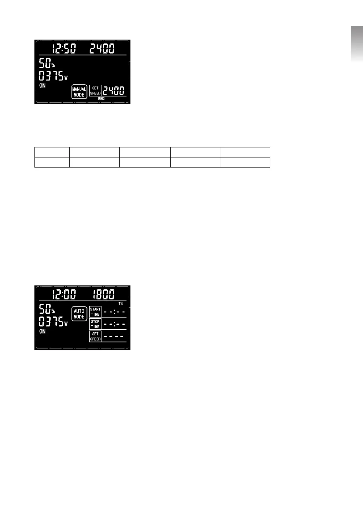 są wyświetlane na ekranie jako „T1”, „T2”, „T3” i „T4”. Po ustawieniu pompa pracuje z zaprogramowaną prędko