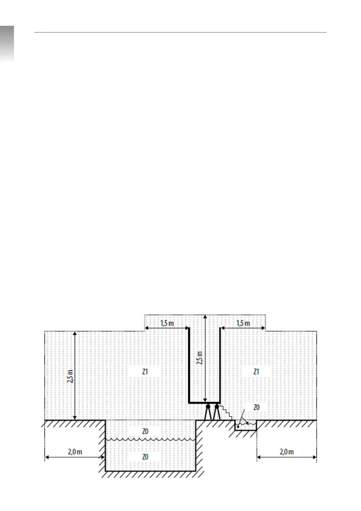 • A una distanza di 2 metri dal bordo della piscina, per evitare gli schizzi. Alcune normative ammettono altre