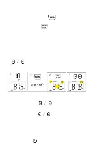 a. Press the “ ” button to turn on the radio.