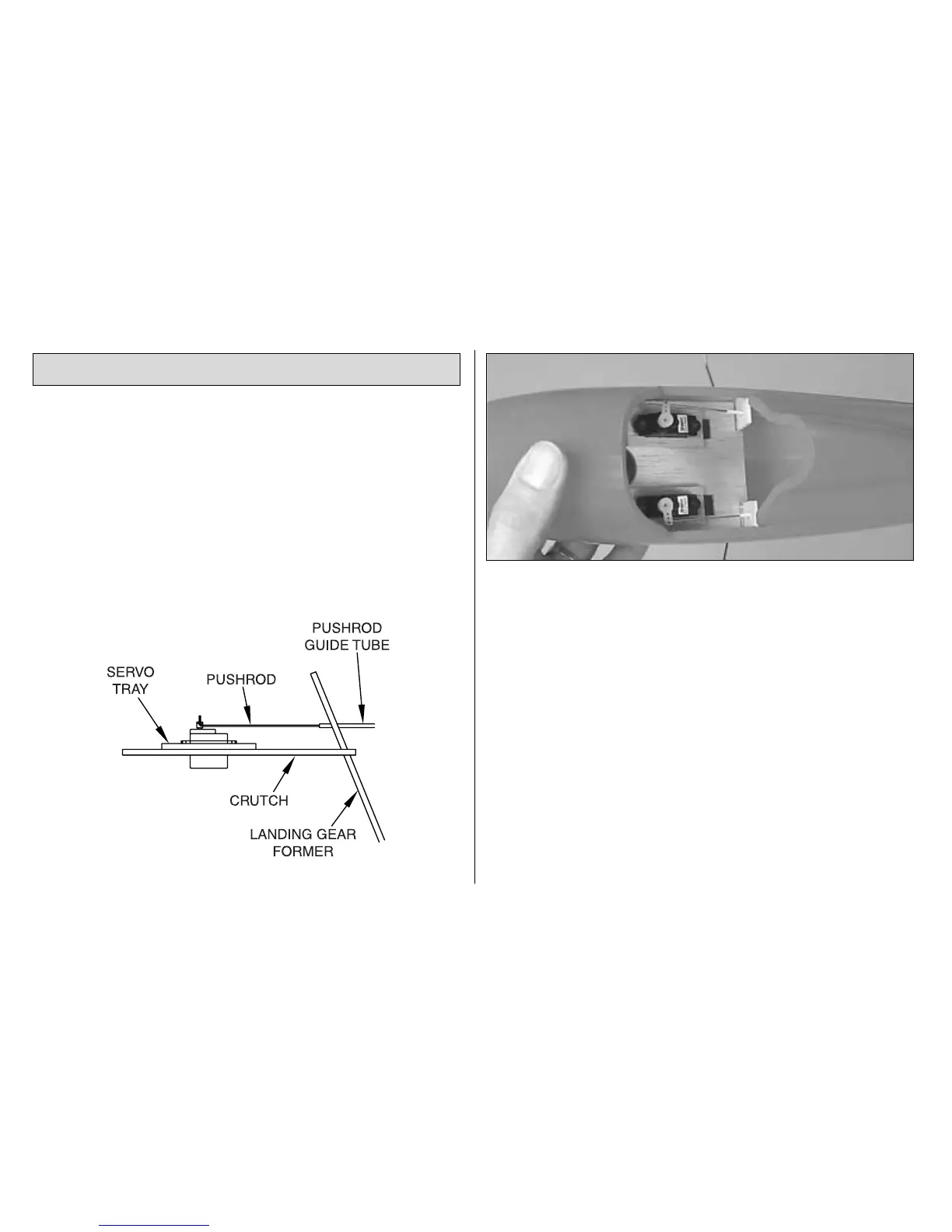 ❏ 2. Fit the servos into the balsa servo trays (14). Drill