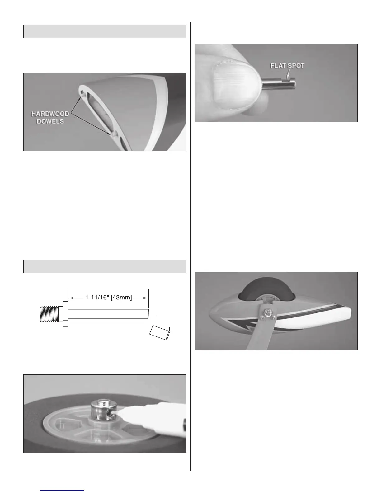 ❏ 2. Glue both 1/4" x 5/8" [6 x 15mm] hardwood dowels into
