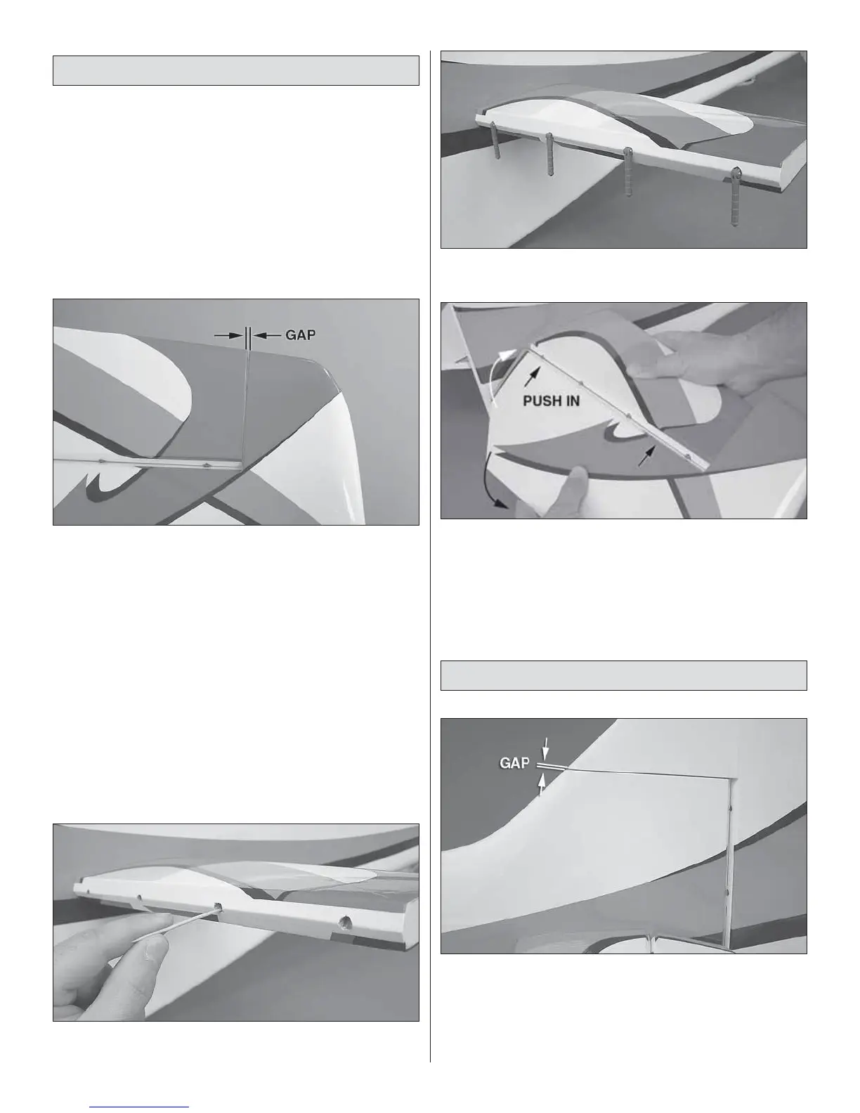 ❏ 1. Test fi t the rudder using the four remaining hinges.