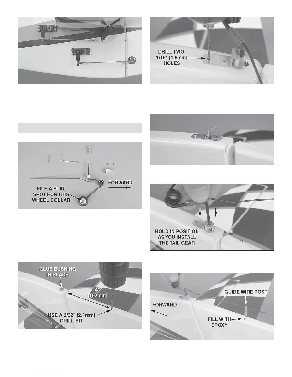 ❏ 7. Apply epoxy to the plastic tailwheel guide wire post and
