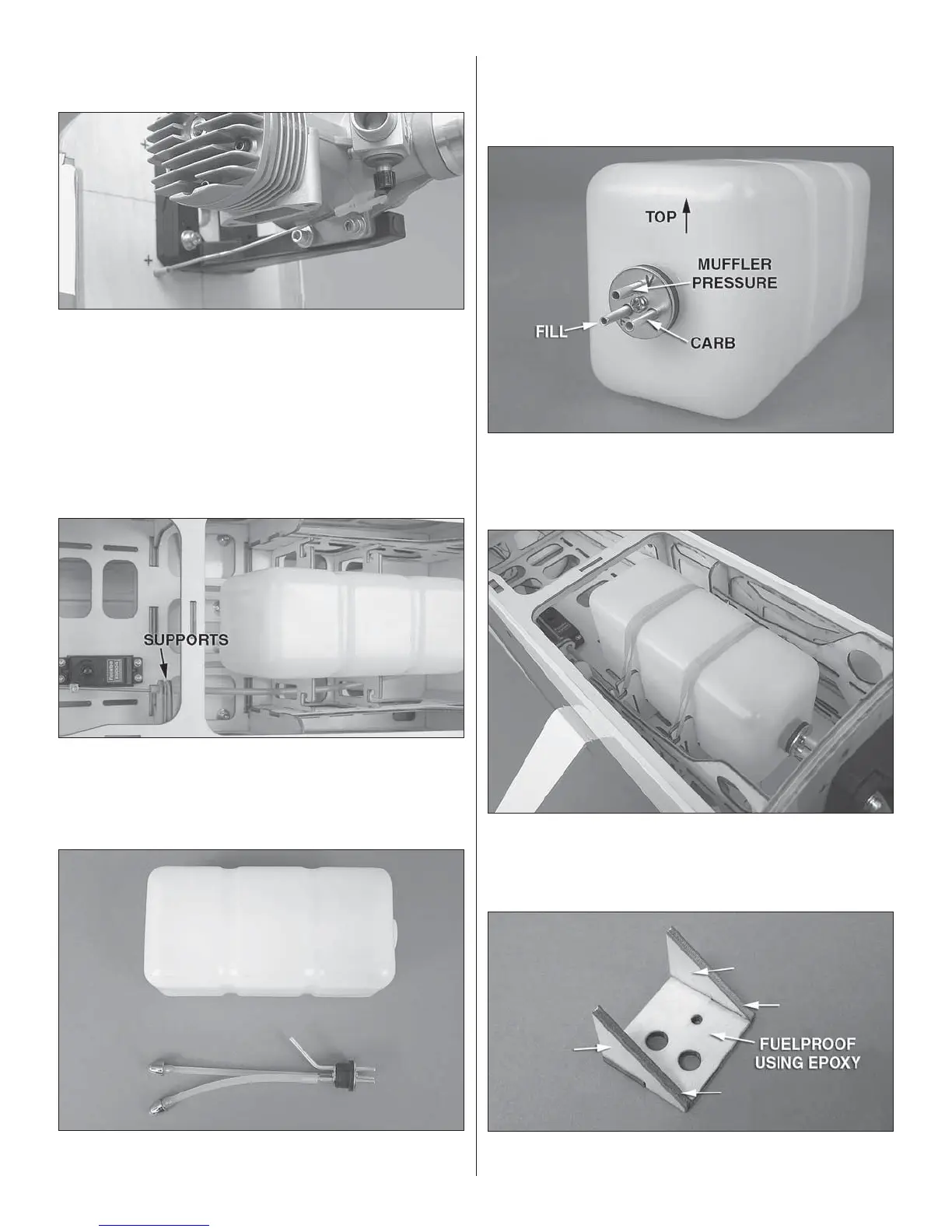❏ 18. Locate the wood parts and build the fuel fi ller mount