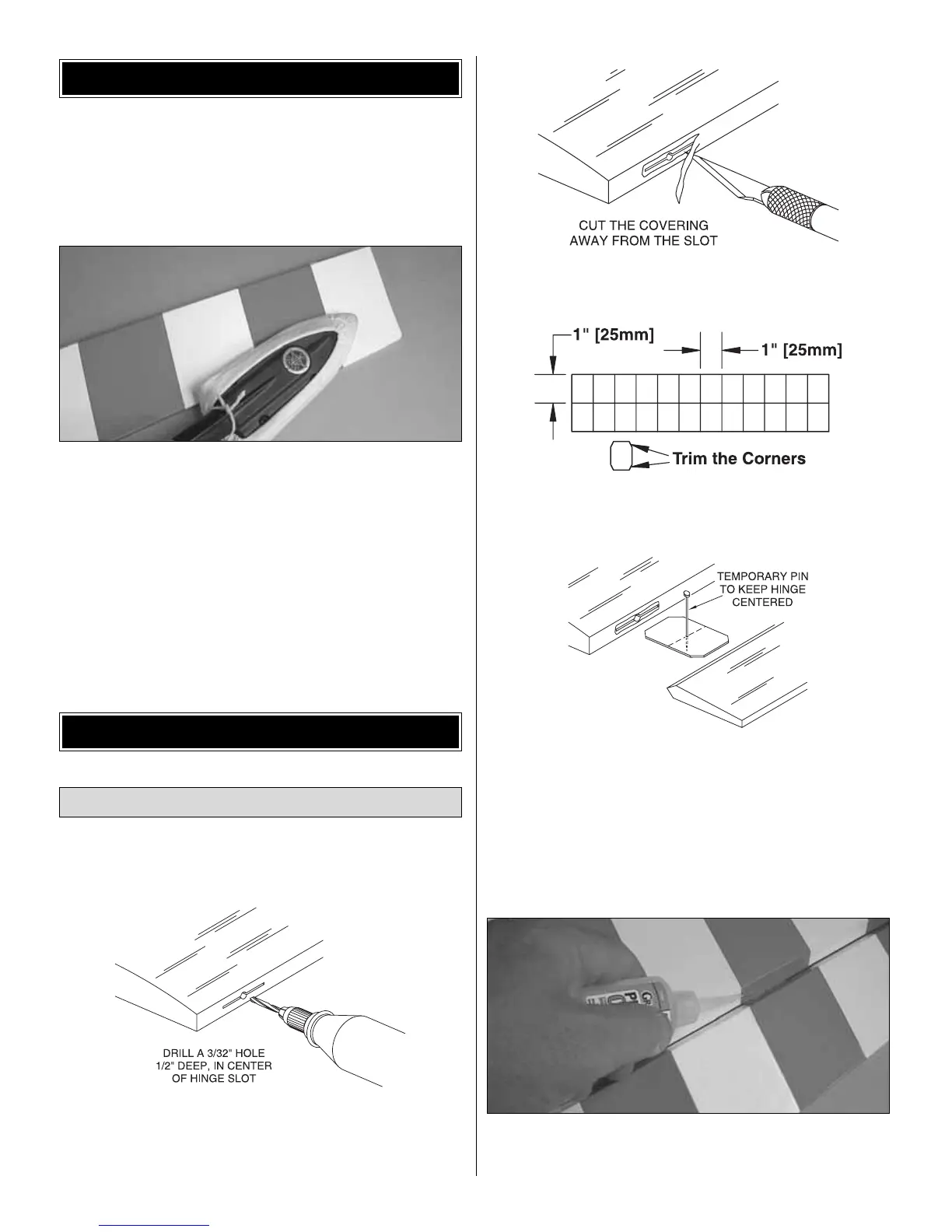 of each hinge slot to allow the CA to “wick” in. Follow-up with