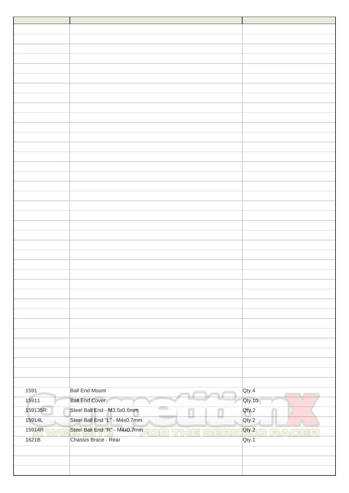 GVM PART # DESCRIPTION QUANTITY