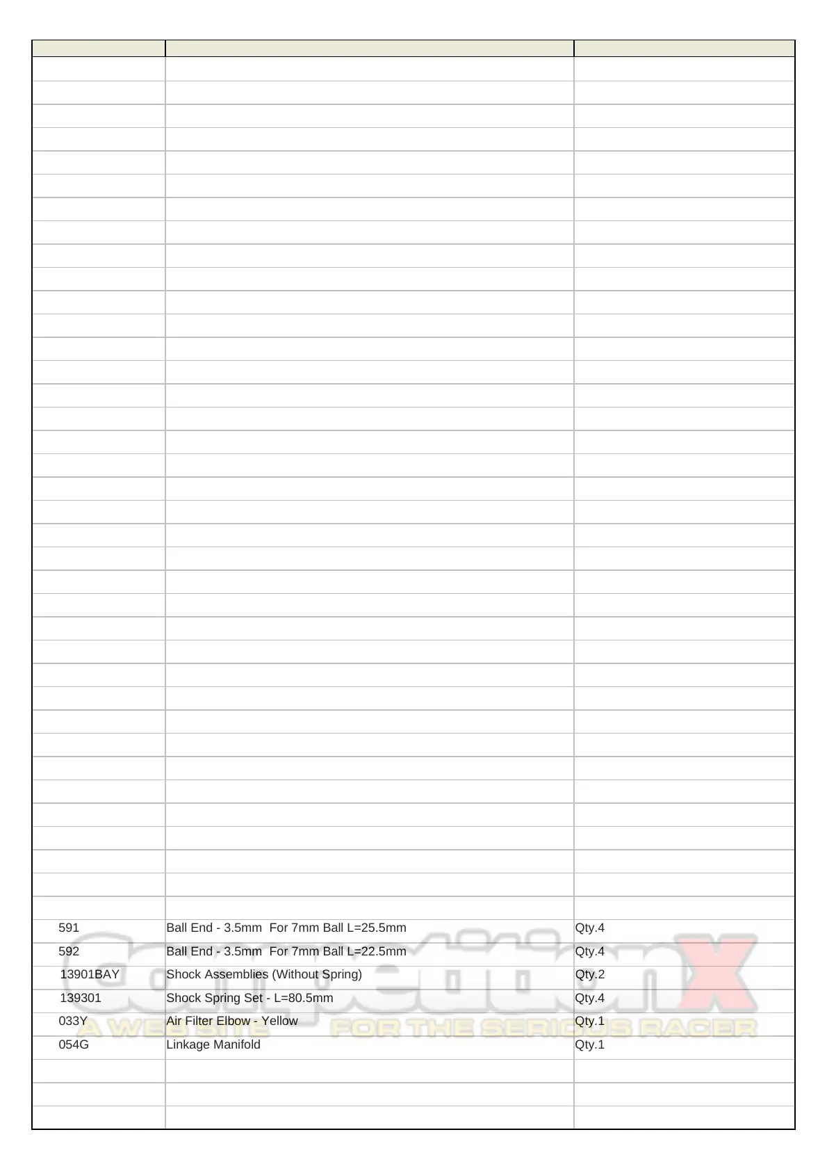 GVM PART # DESCRIPTION QUANTITY