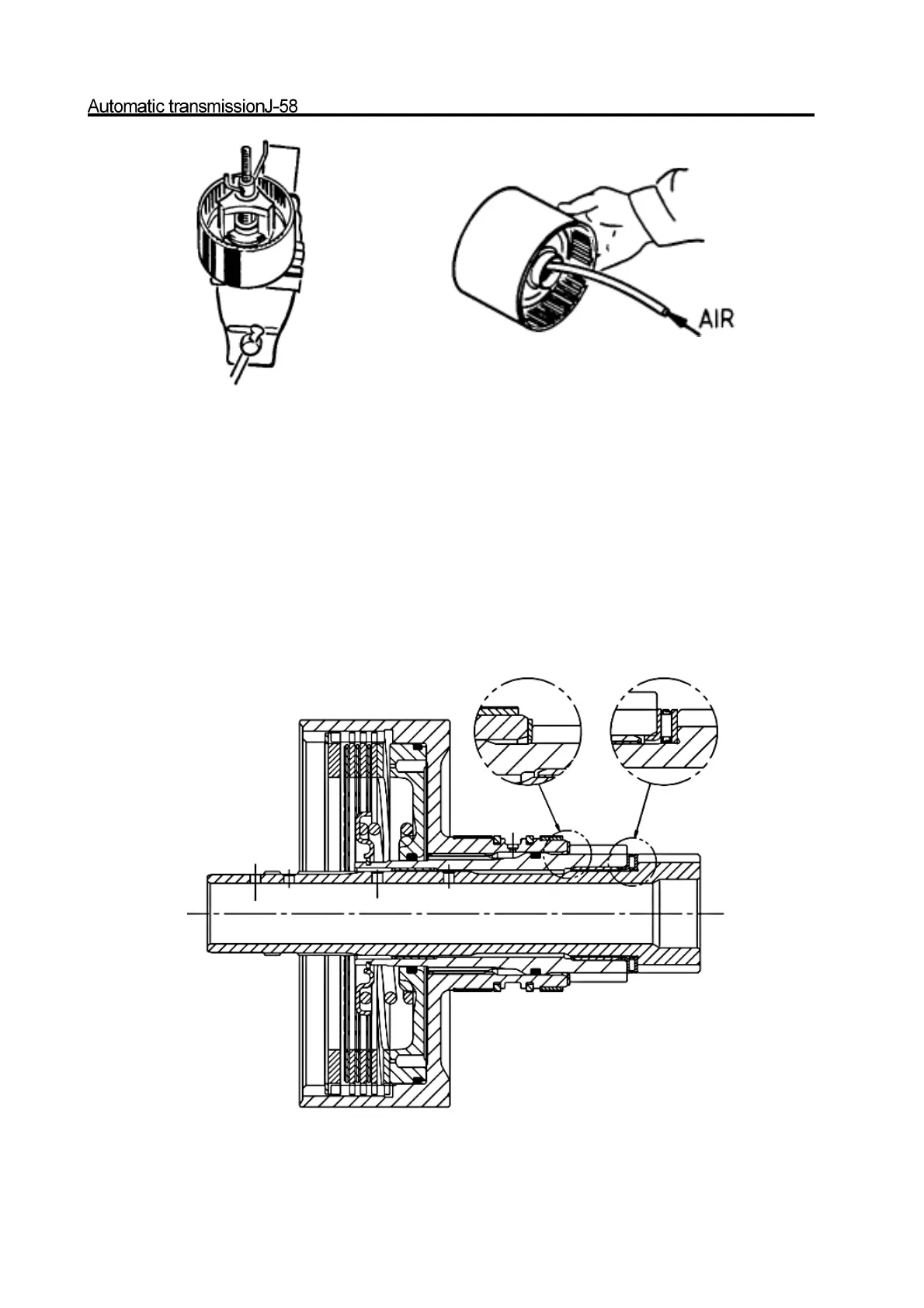m. Send the compressed air into the cylinder through the cylinder hole, remove the clutch piston from the clutch cylinder. Refer