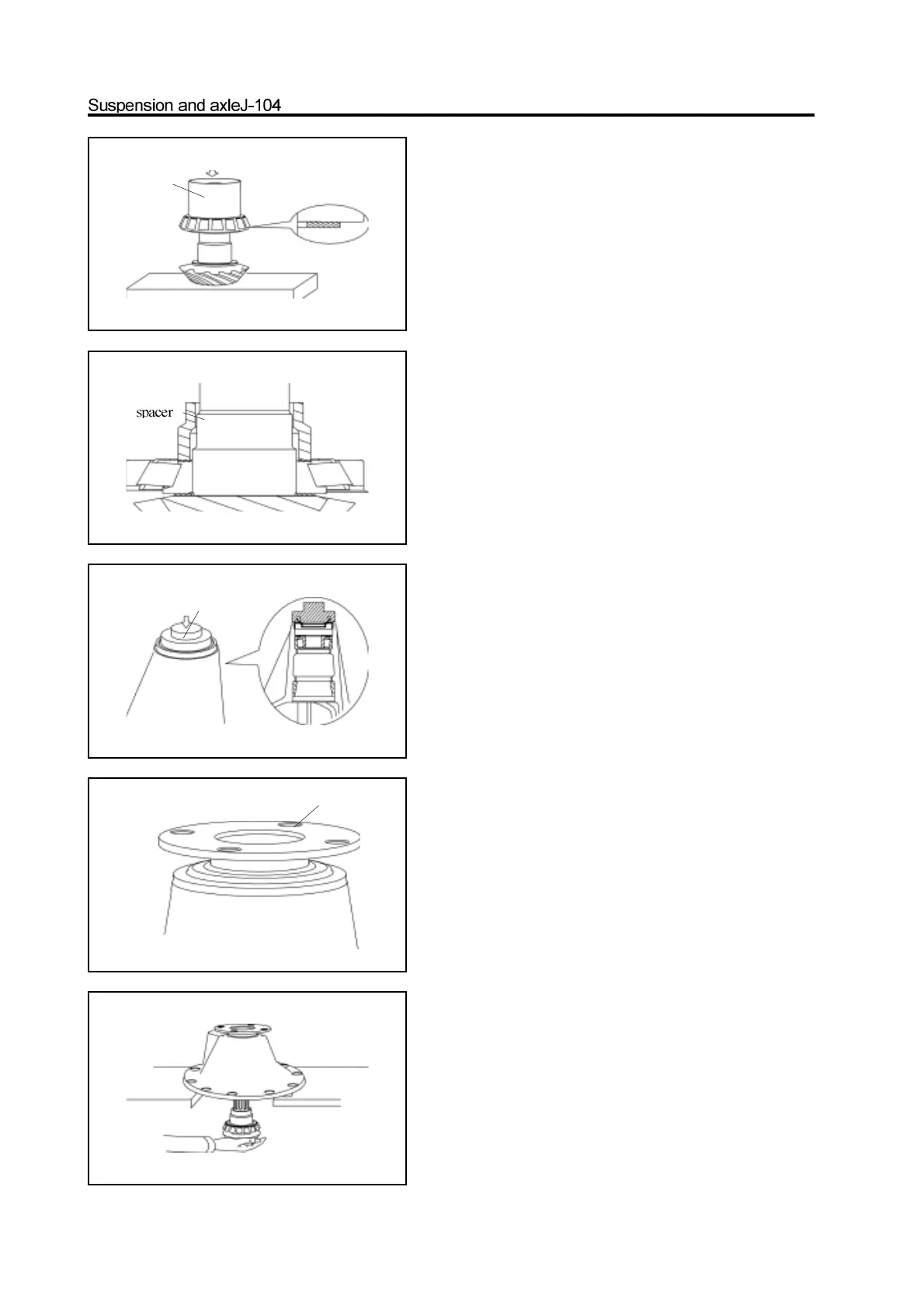 b. Insert the drive bevel gear installed with the spacer, rear bearing