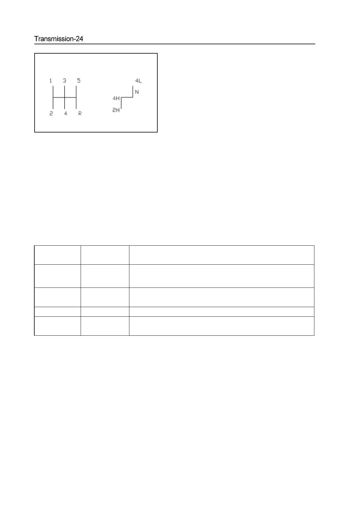 N Neutral gear When use the gear position during using of winch, it could not drive the vehicle.
