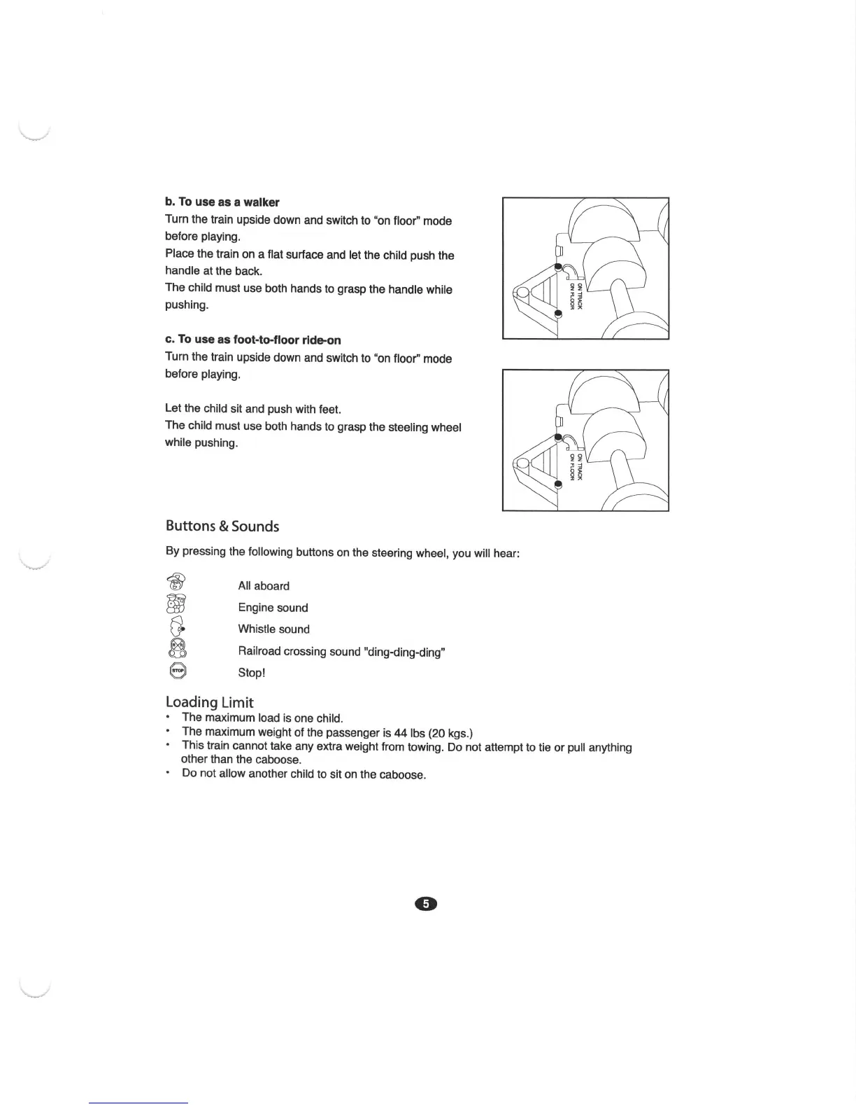Great west Talking train - Use as Walker; Foot-to-Floor Ride-On; Features and Limits; Buttons and Sounds