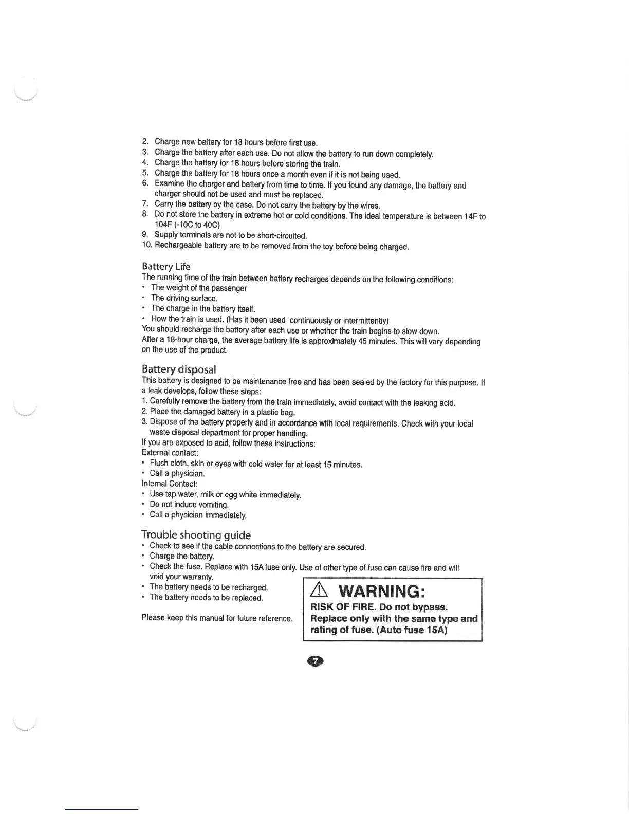 Great west Talking train - Battery Life Expectations; Battery Disposal Guidelines; Troubleshooting; Trouble Shooting Guide