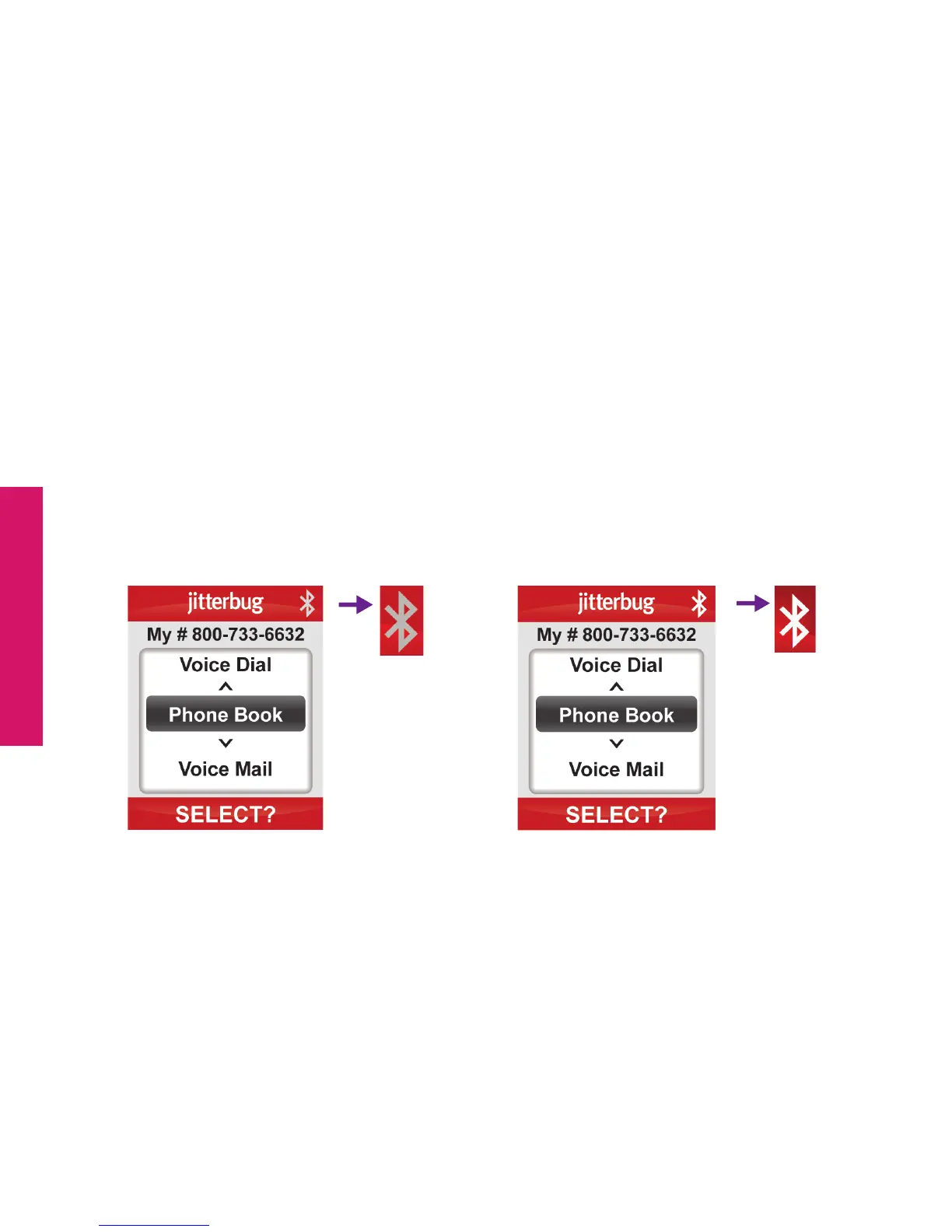 You will notice different Bluetooth icons on your Jitterbug Main Screen that