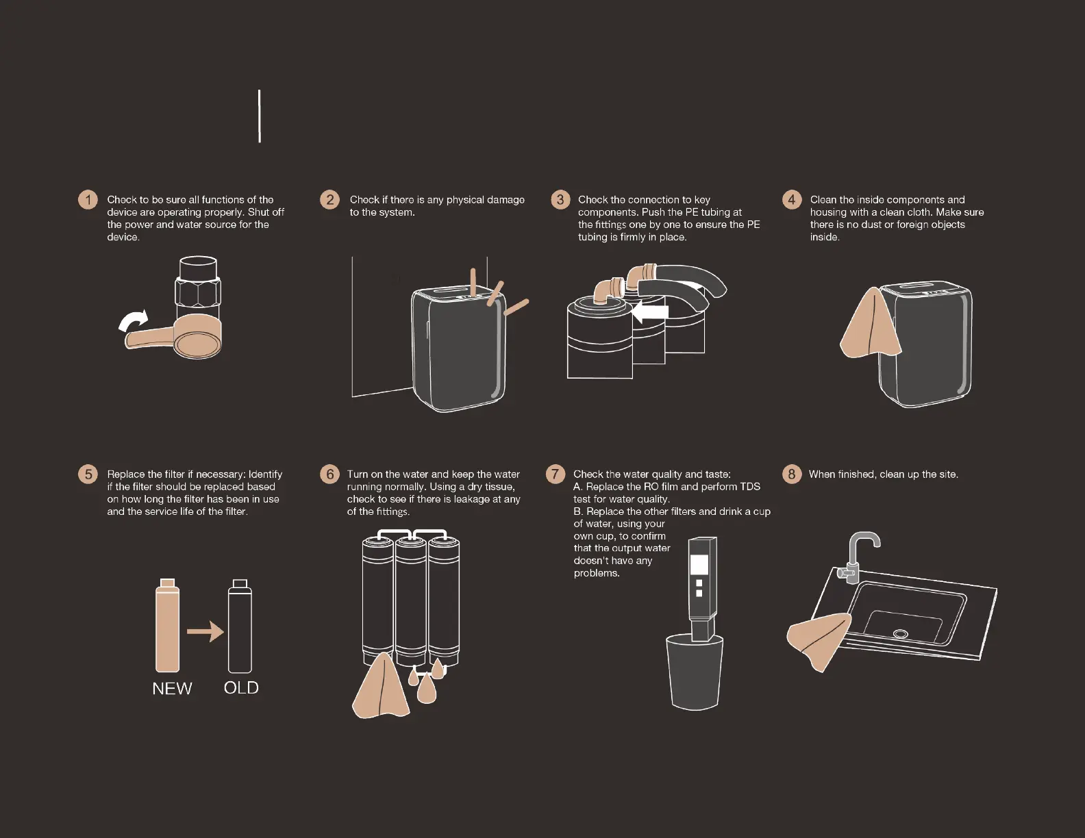 Regular maintenance is required in order to ensure continued proper operation and to maintain optimal water quality and safety. Please refer to the