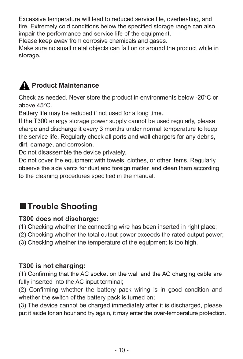 GRECELL T300 - Maintenance and Troubleshooting; Product Maintenance; Troubleshooting Common Issues