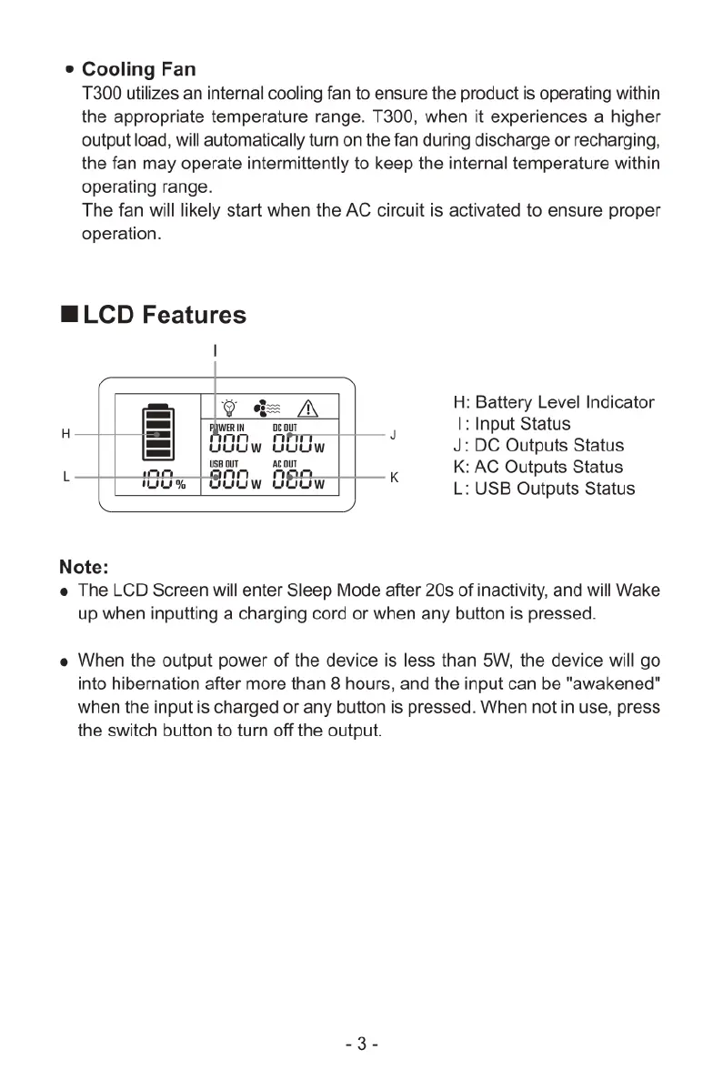 GRECELL T300 - LCD and Cooling System; LCD Screen Features; Cooling Fan Operation