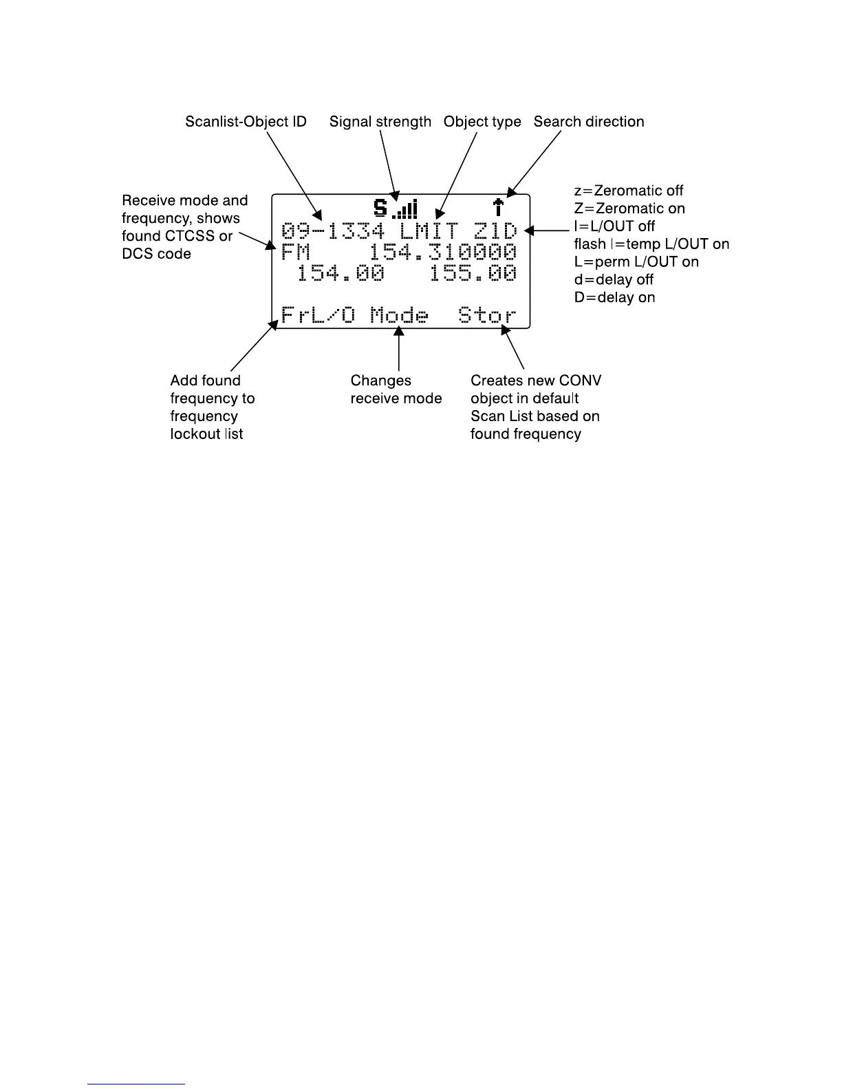 When the LMIT search stops on an active frequency, the display will appear