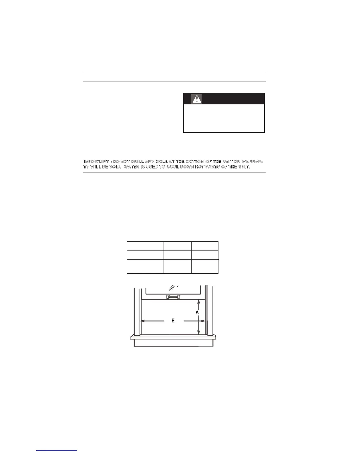 MPORTANT : DO NOT DRILL ANY HOLE AT THE BOTTOM OF THE UNIT OR WARRAN-