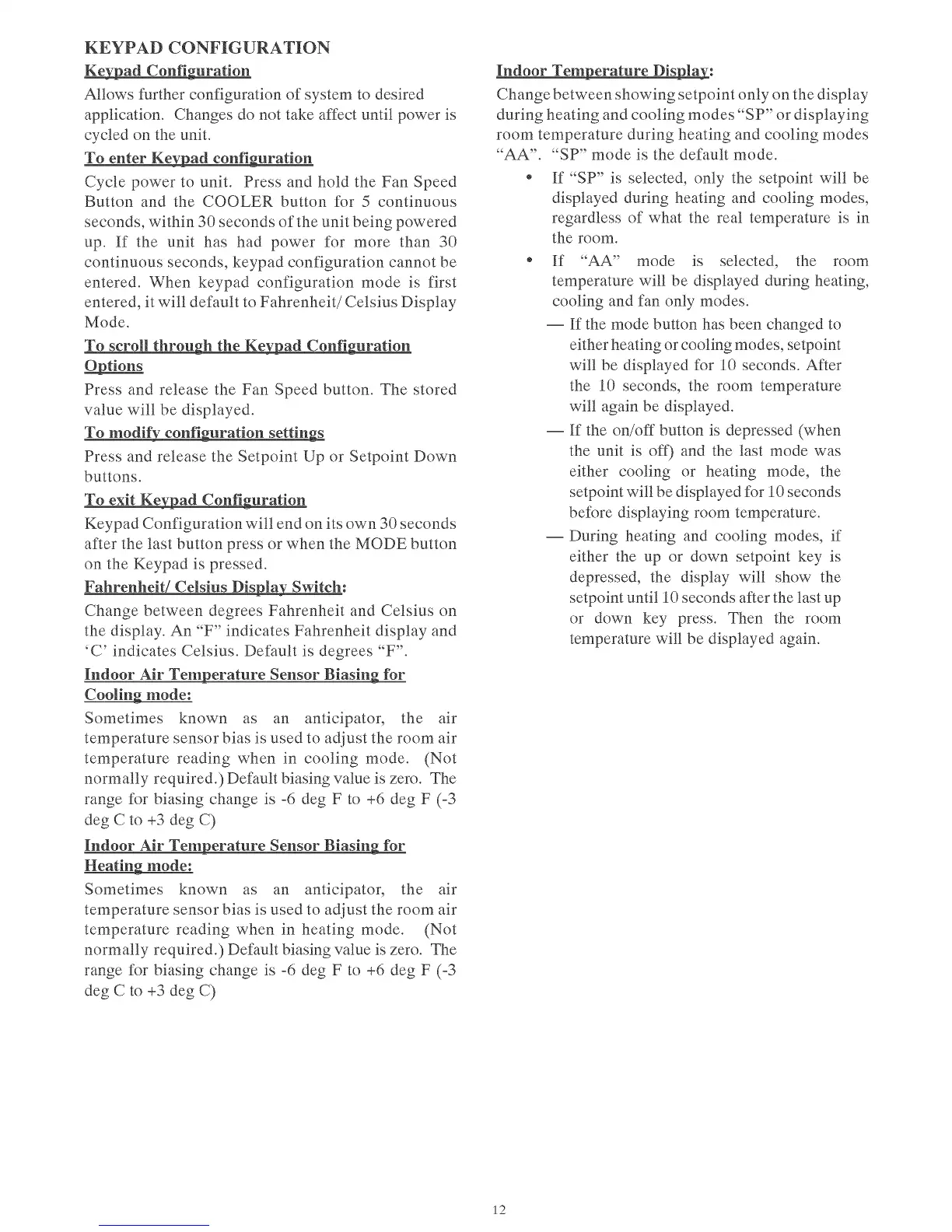 range for biasing change is -6 deg F to +6 deg F (-3