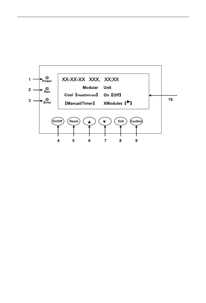 3. Error indicator(red): The indicator is on when the unit is at fault, or otherwise it is off.