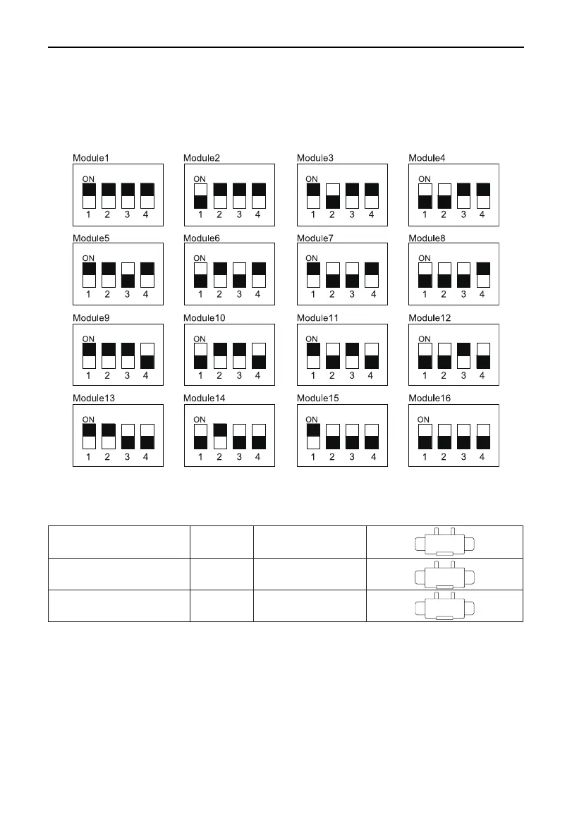 Four bit toggle switches are used for indicating hardware address (1~16) of modules, with module No.