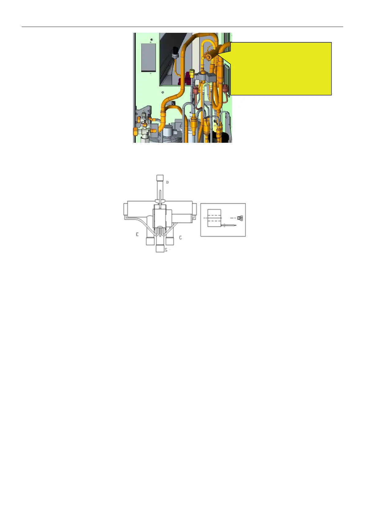 When the system is in heating mode, E-the pipeline is with high pressure and high temperature; C, S-the