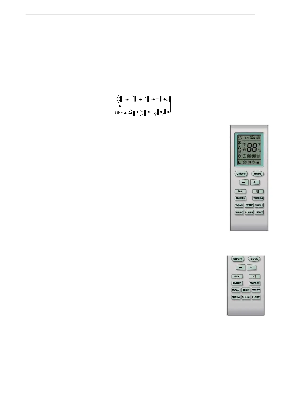 by pressing the SWING button, with the displayed symbol indicating this function is on