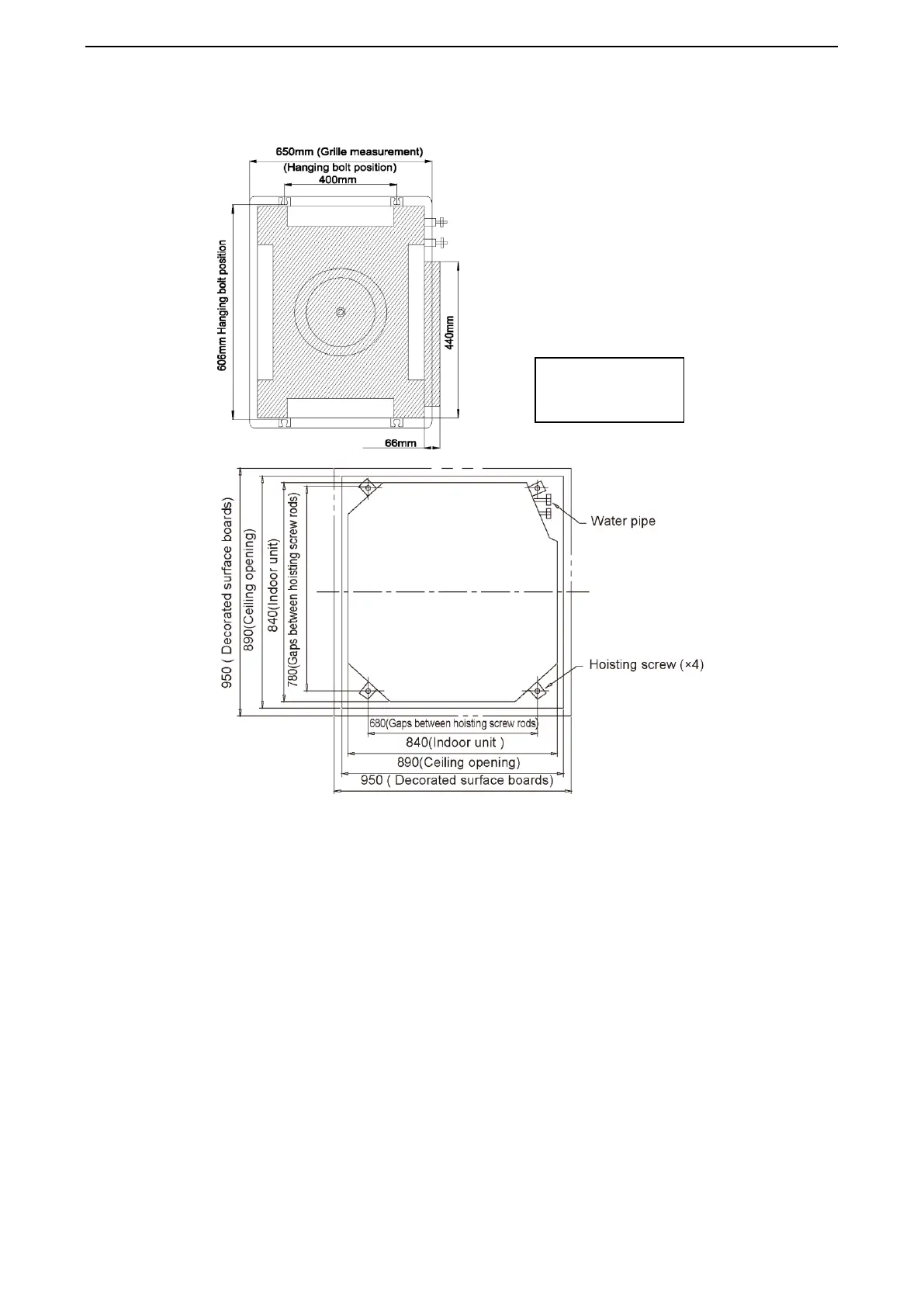 To keep the drainage hose from sagging, keep space between hanging hooks at 1~1.5m.