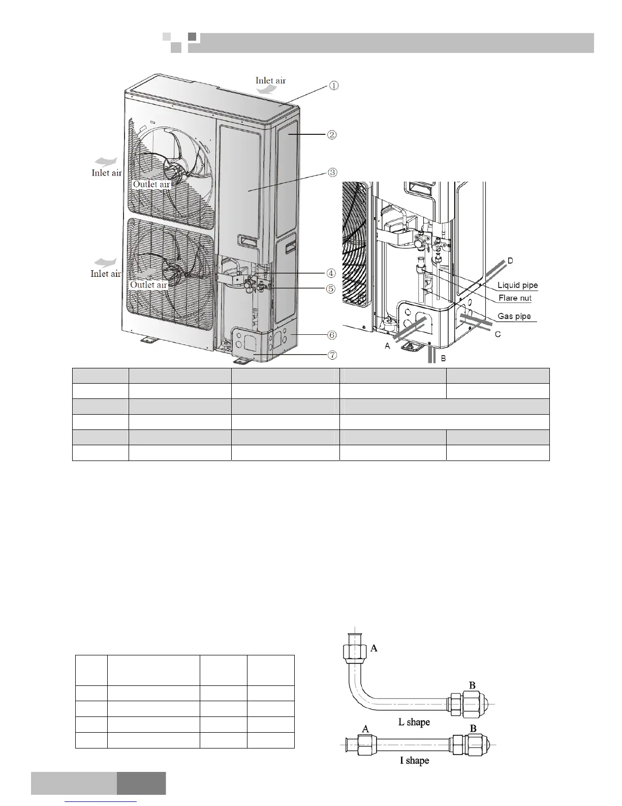 2) The refrigerant pipes can be installed in four directions, please choose the proper direction.