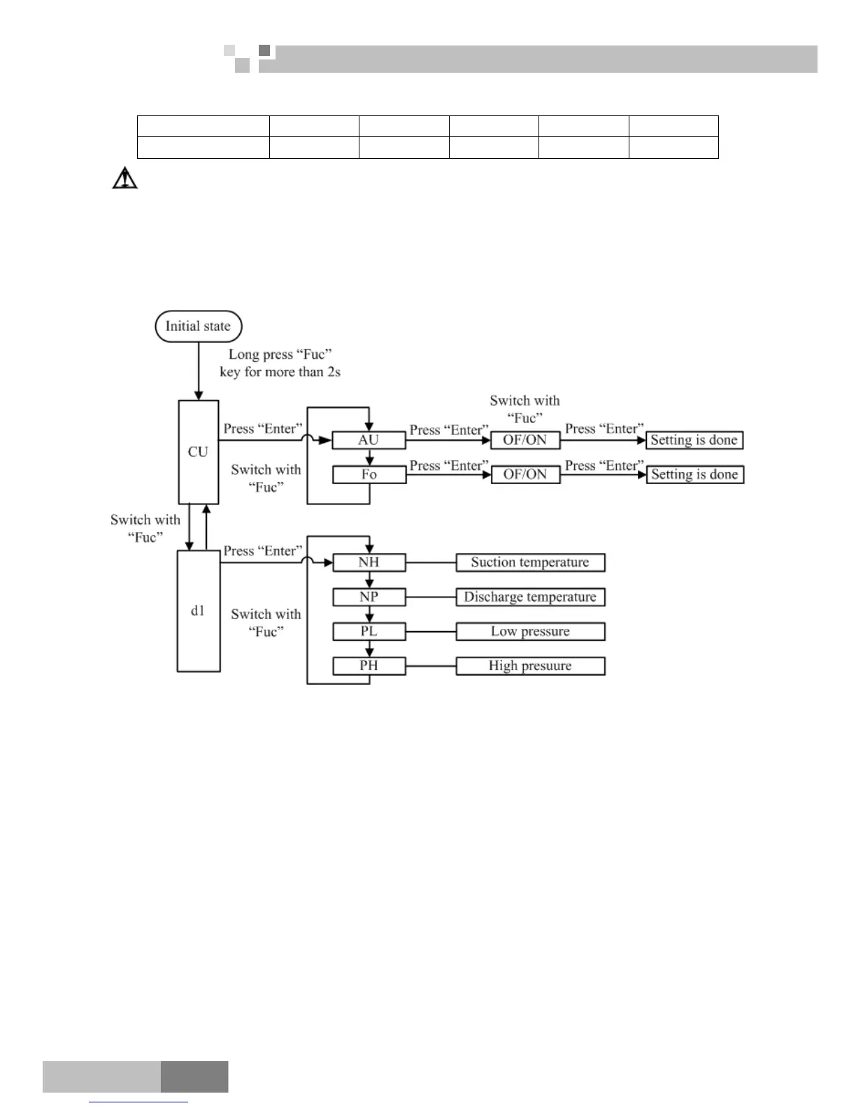 Press “Fuc” key to switch the menu.