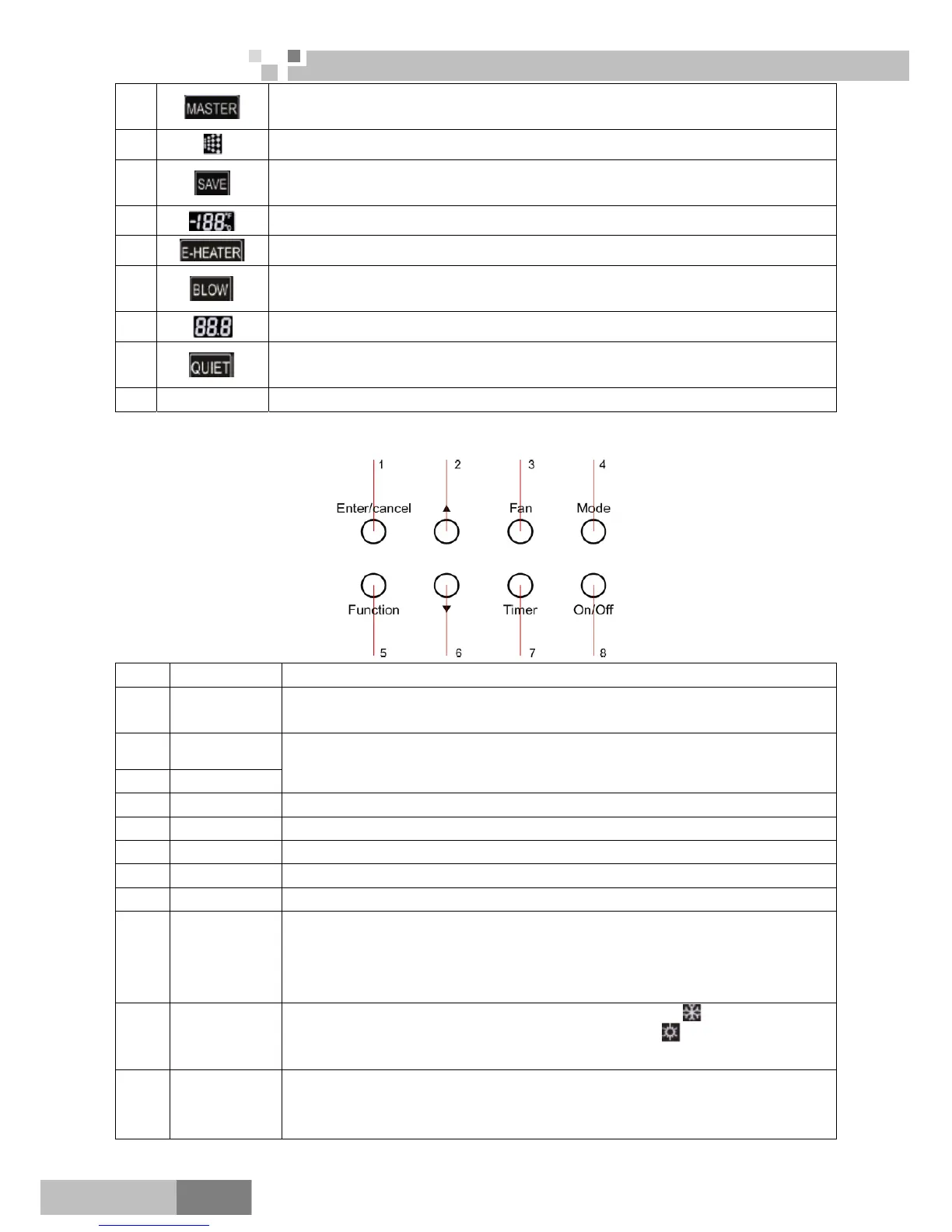8 On/Off Turn on/off the indoor unit.