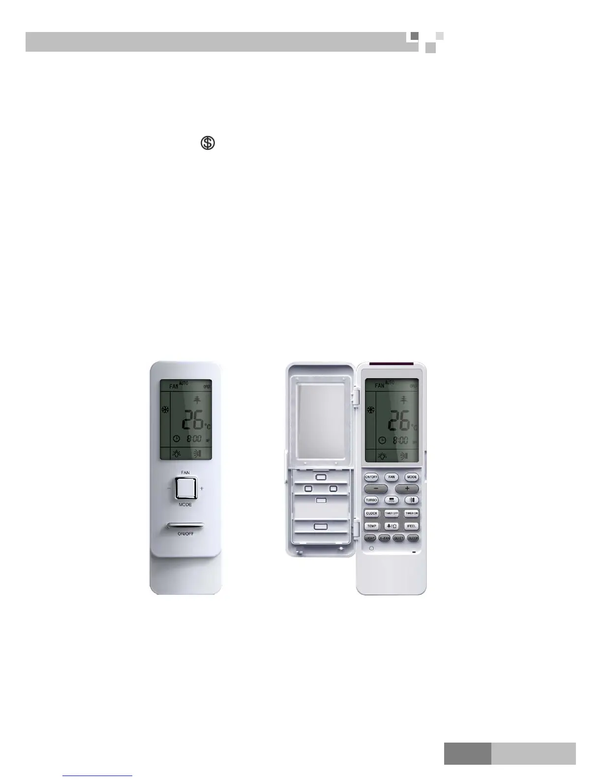 powered on. Under Auto mode the temperature will not be displayed; Under Heat mode, the initial value is 28℃