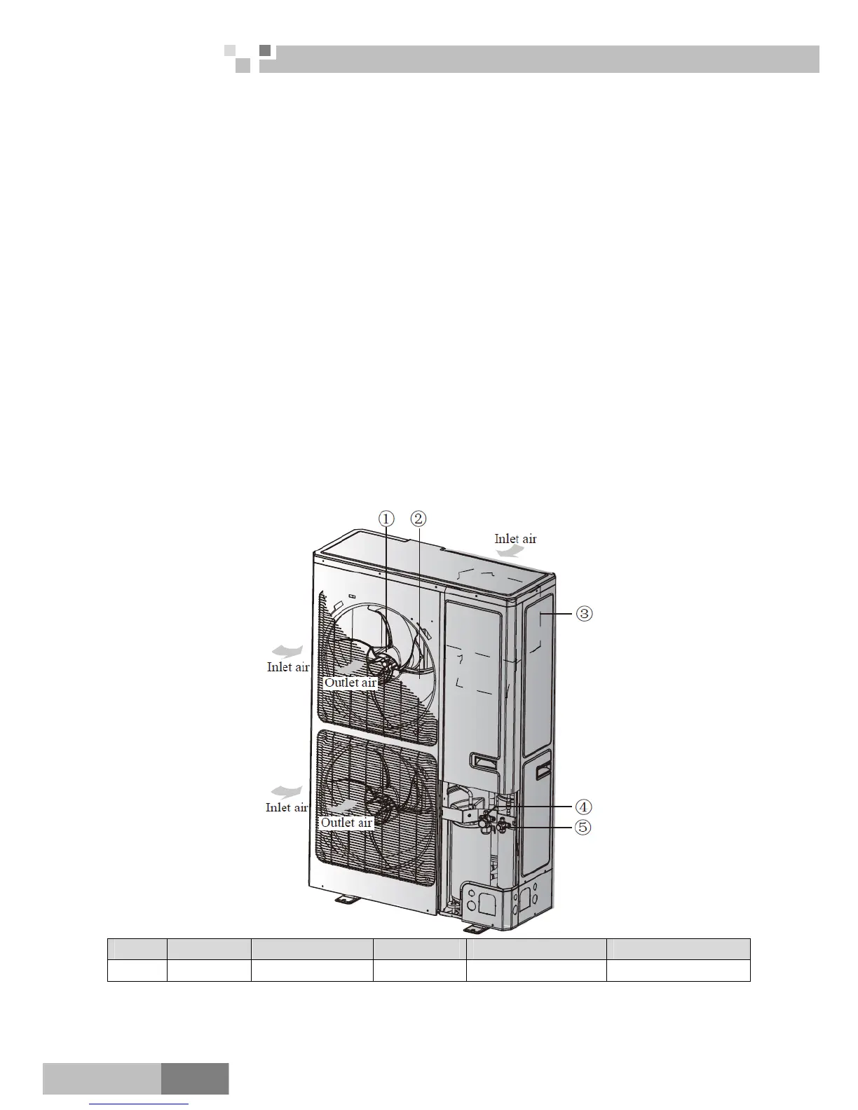 Name Fan motor Axial Flow Fan Electric Box Gas side stop valve Liquid side stop valve