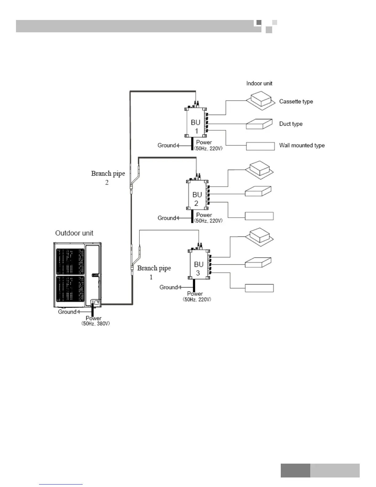 For the super free match series system, one outdoor unit is able to drive up to three BU modules and nine