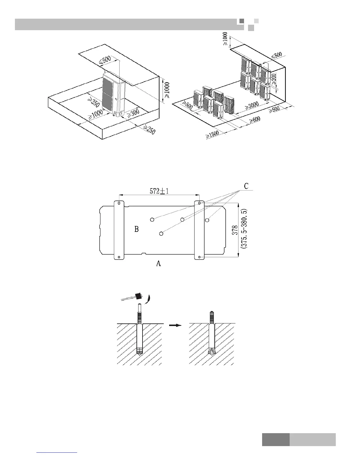 1) Check the installation location and ensure it is strength and level, so that the unit will not cause any