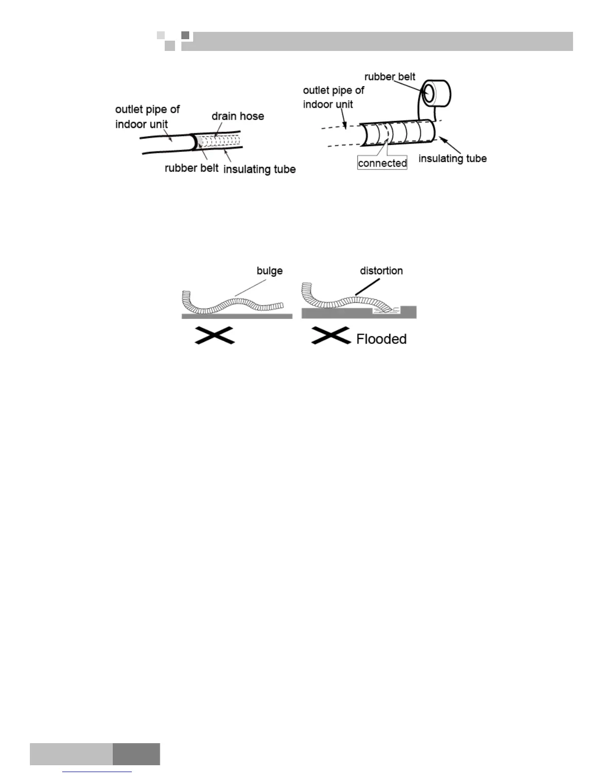 The insulating tube should be connected reliably with the sleeve outside the outlet pipe. The drain hose should