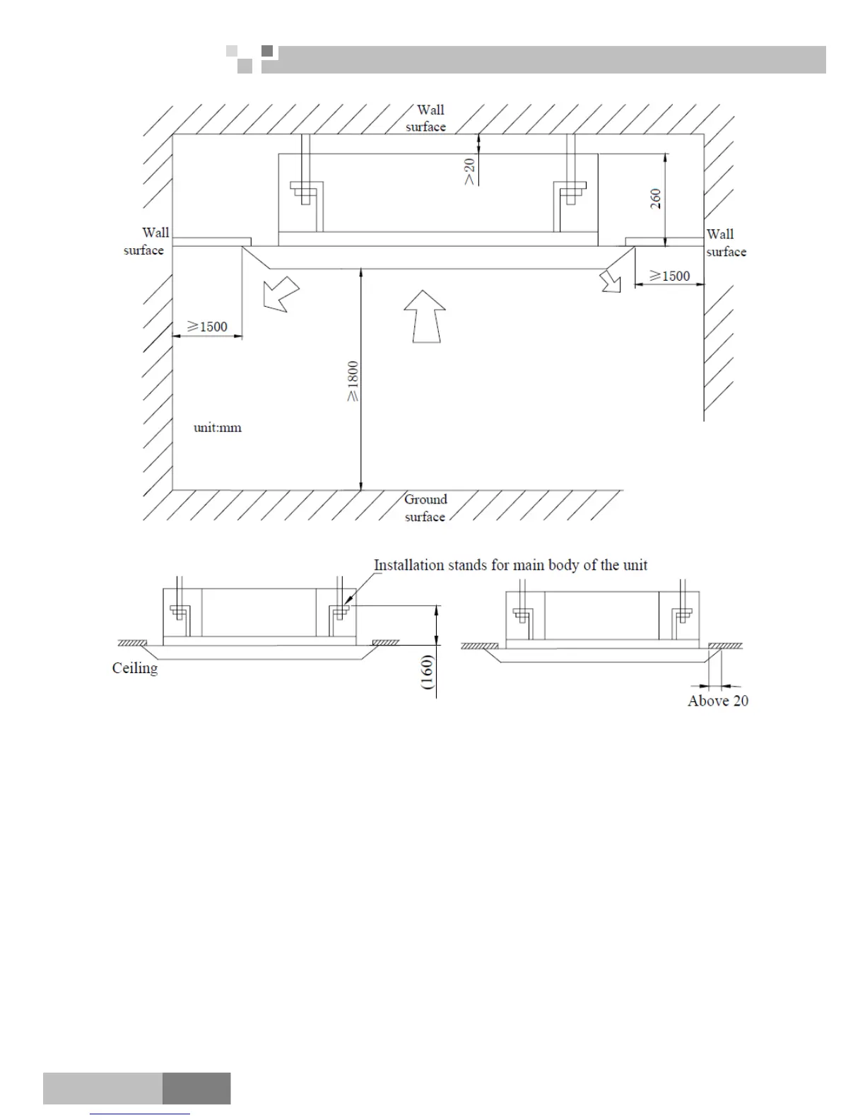 3) Adjust the unit to the suitable install place.