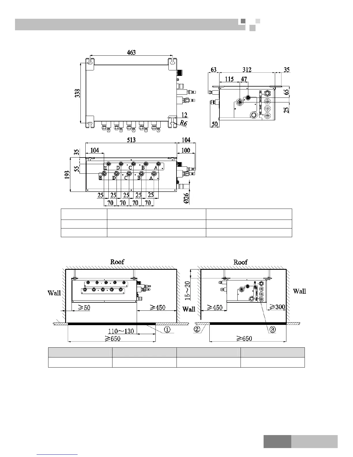 Sorts Indoor unit side (mm) Outdoor unit side (mm)