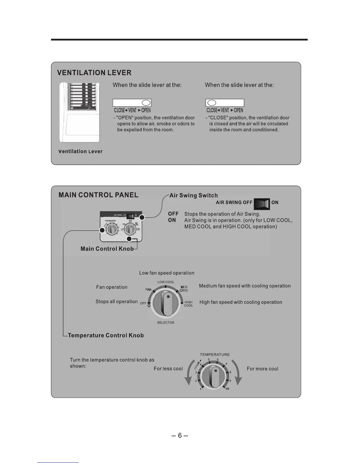 Gree G1407M - Ventilation Lever; Main Control Panel