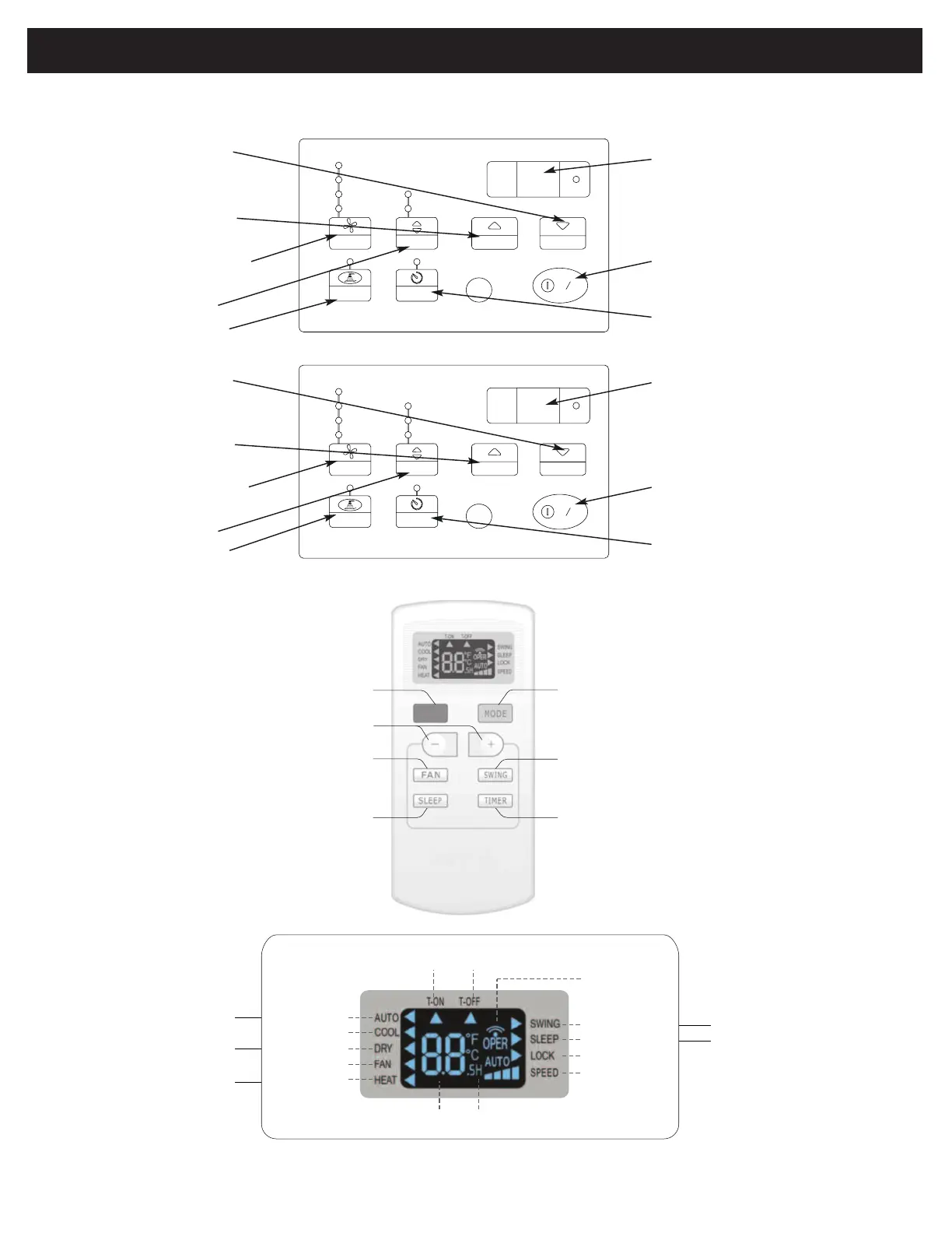 Ensuite, suivez les symboles pour les fonctions désirées. Cet appareil peu contrôlé par le panneau ou la télécommande.