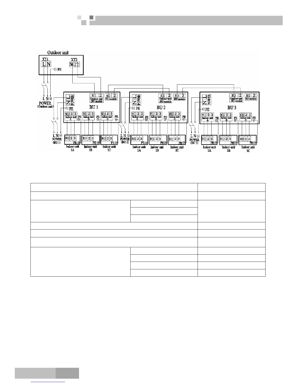 The total length of the transmission line between the outdoor unit and the furthest BU module is not more