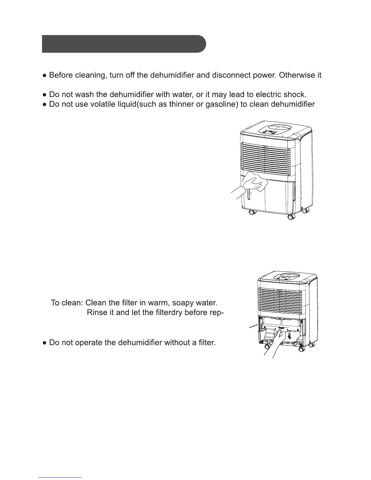 ● Don’t use dust catcher or brush to clean the air filter. Otherwise the air filter