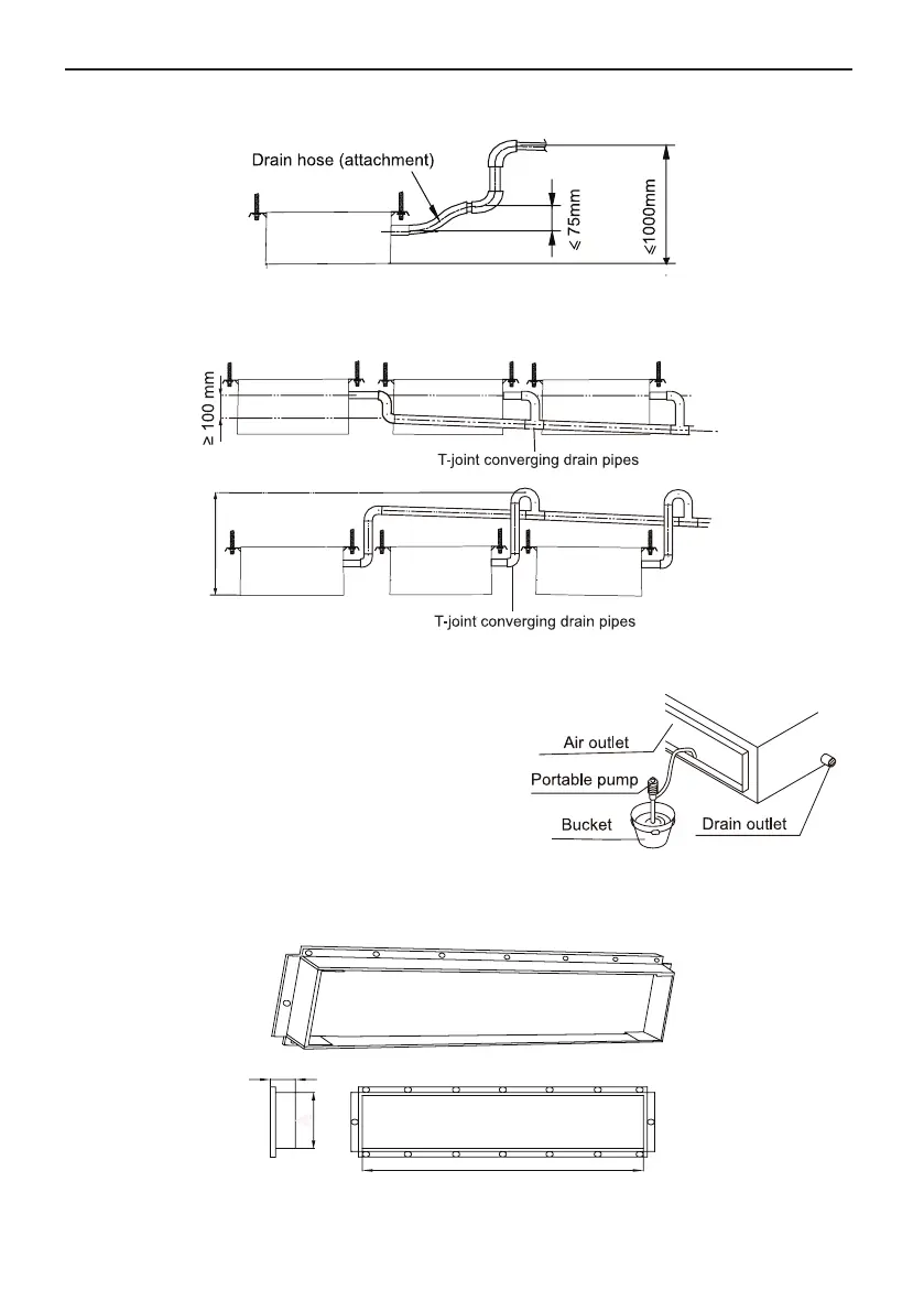 b. When multiple drain hoses are used, their installation should be performed as shown in the