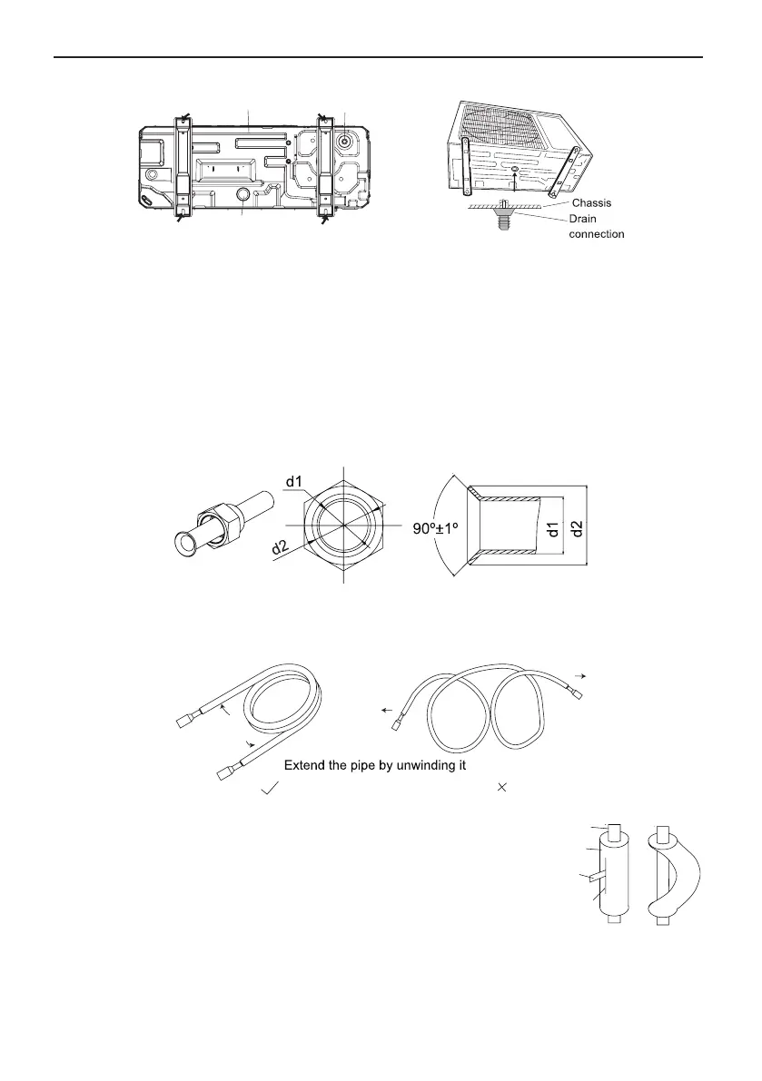 will be collapsed. In this case, cut the heat insulating pipe with a sharp cutter as shown in