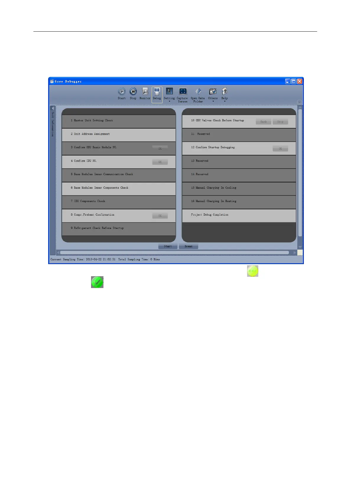 Click ―Start‖ to enable Gree Debugger and units automatically debug. indicates a currently